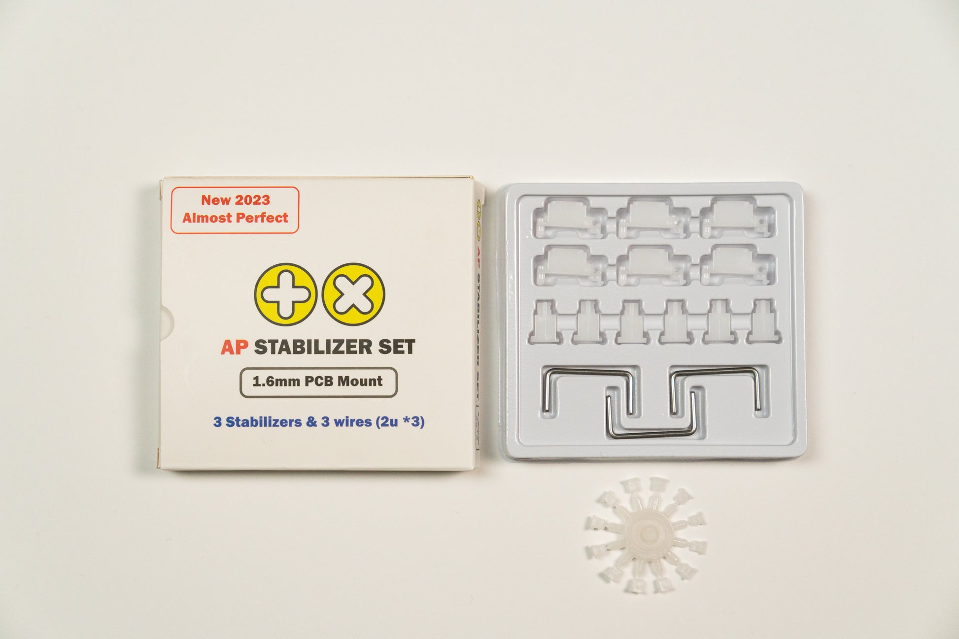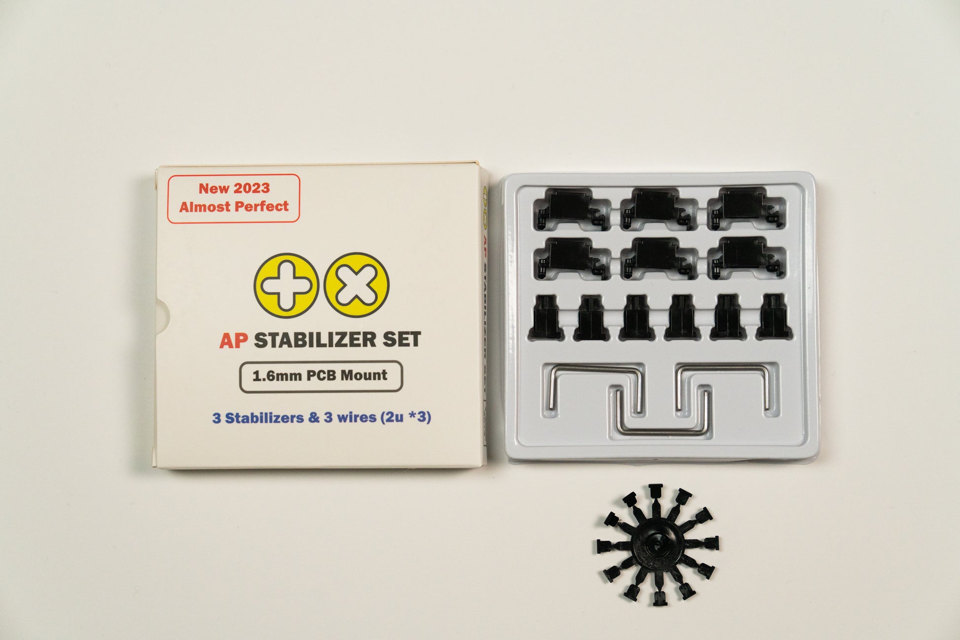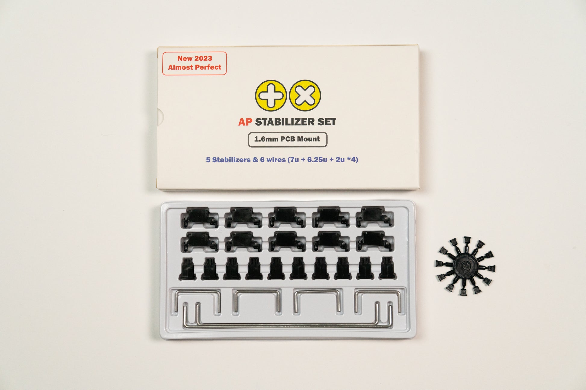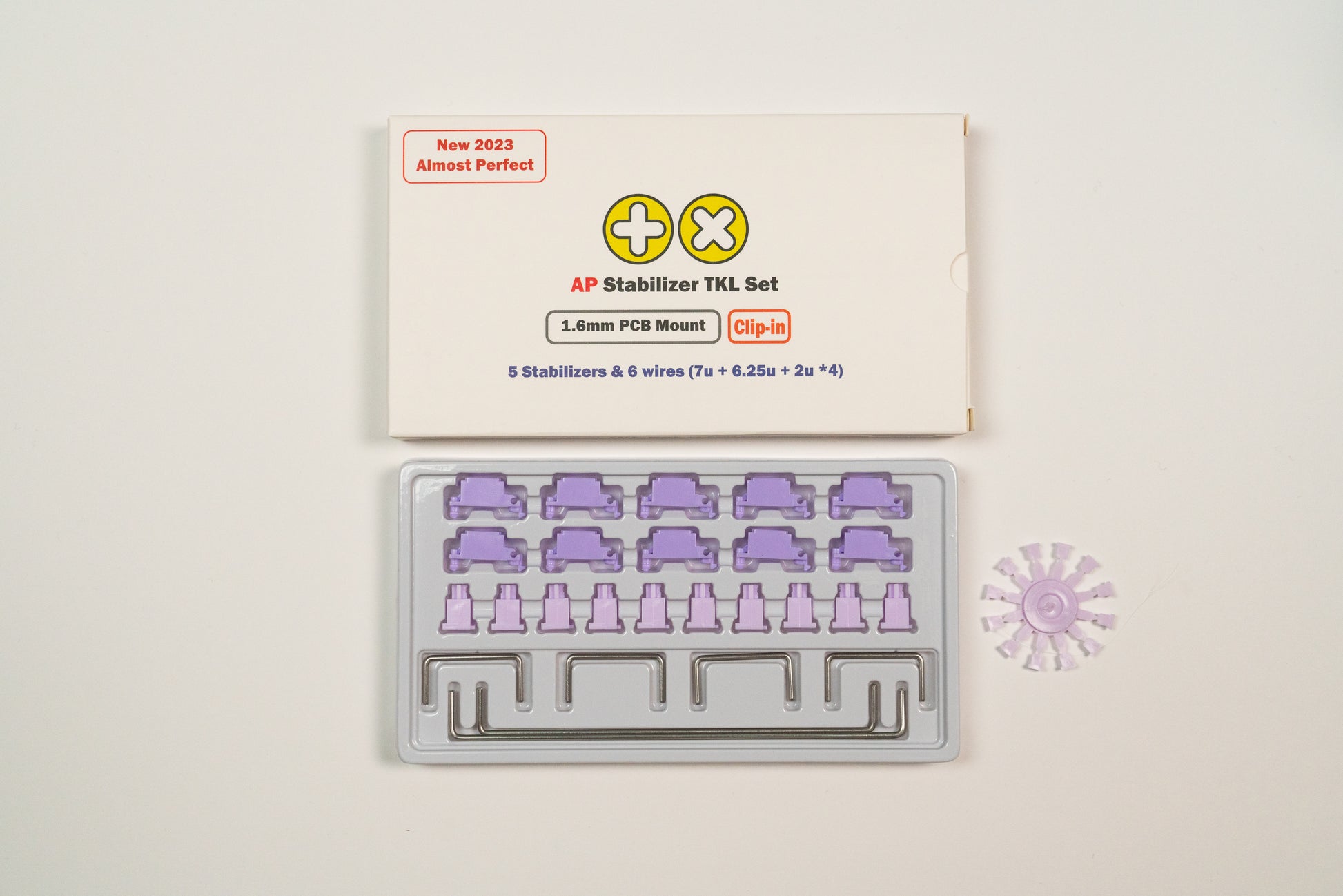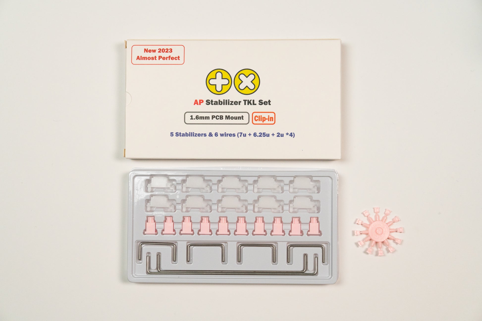- TKLキットには、10x ハウジング、10Xステム、4x 2Uワイヤー、1x 6.25Uワイヤー、1x 7Uワイヤー、12x ストッパーが含まれています